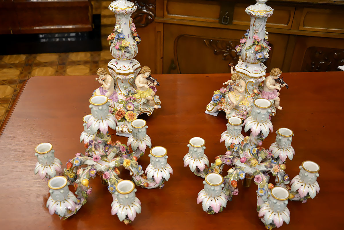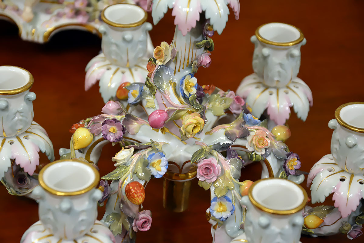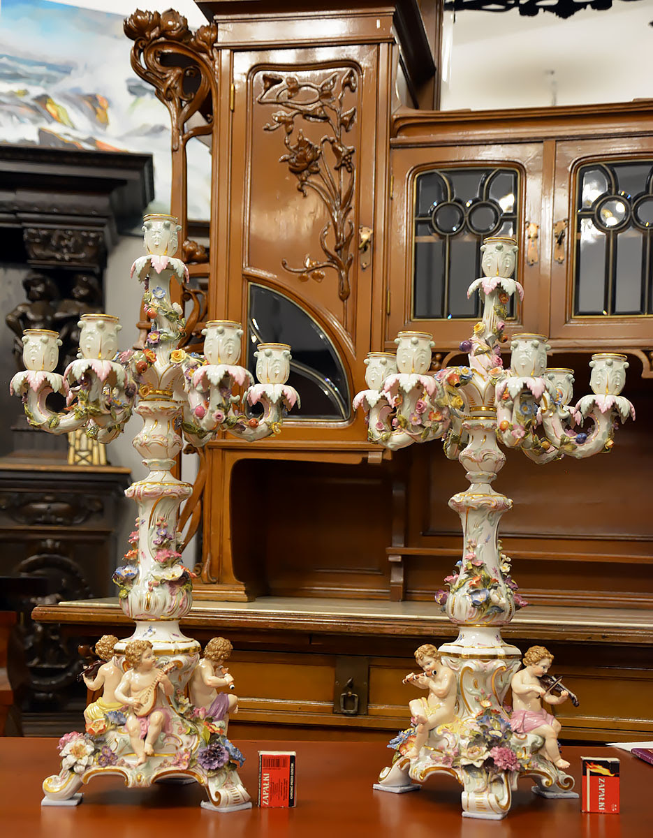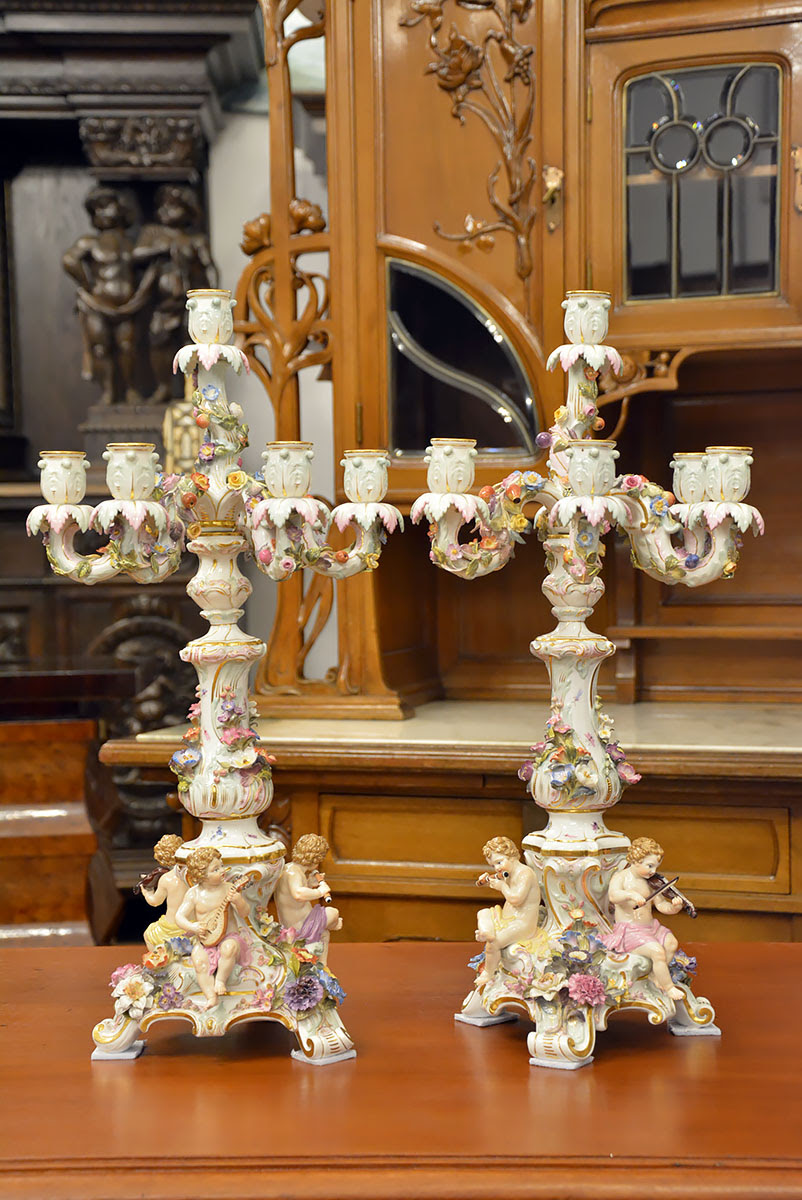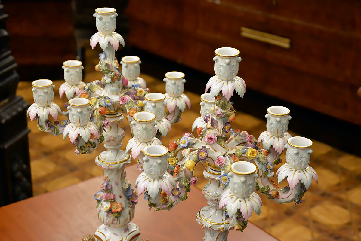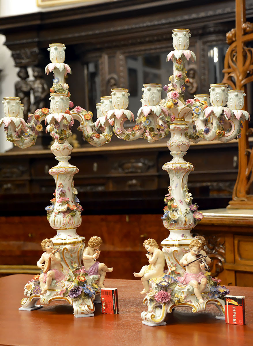 Wyjątkową parę kandelabrów wykonaną z porcelany w Królewskiej Manufakturze Porcelany w Miśni.