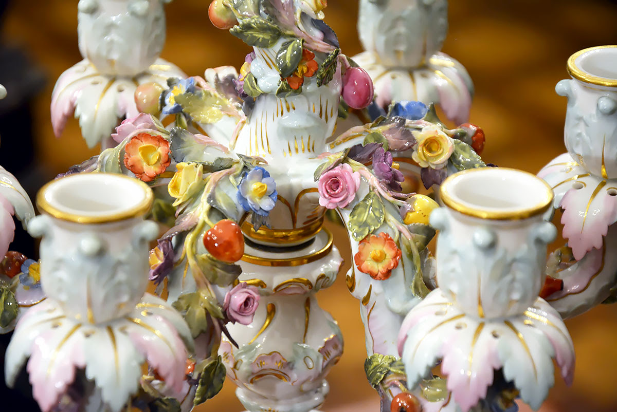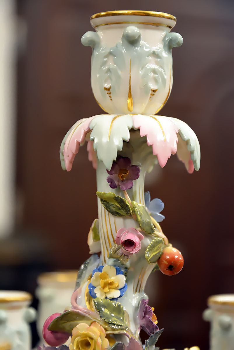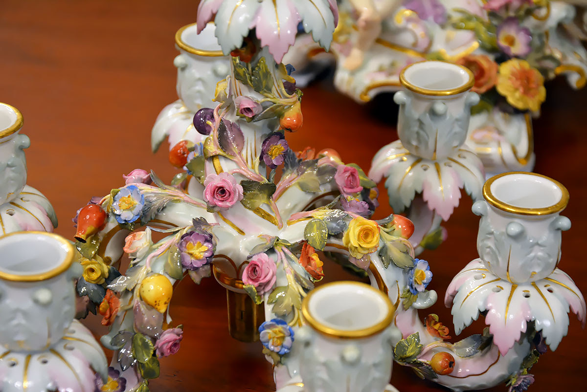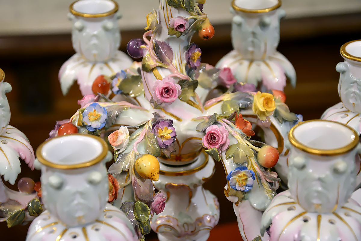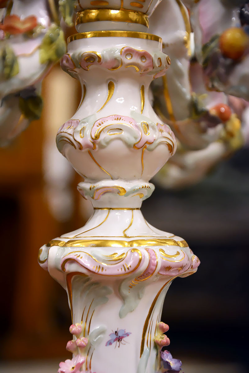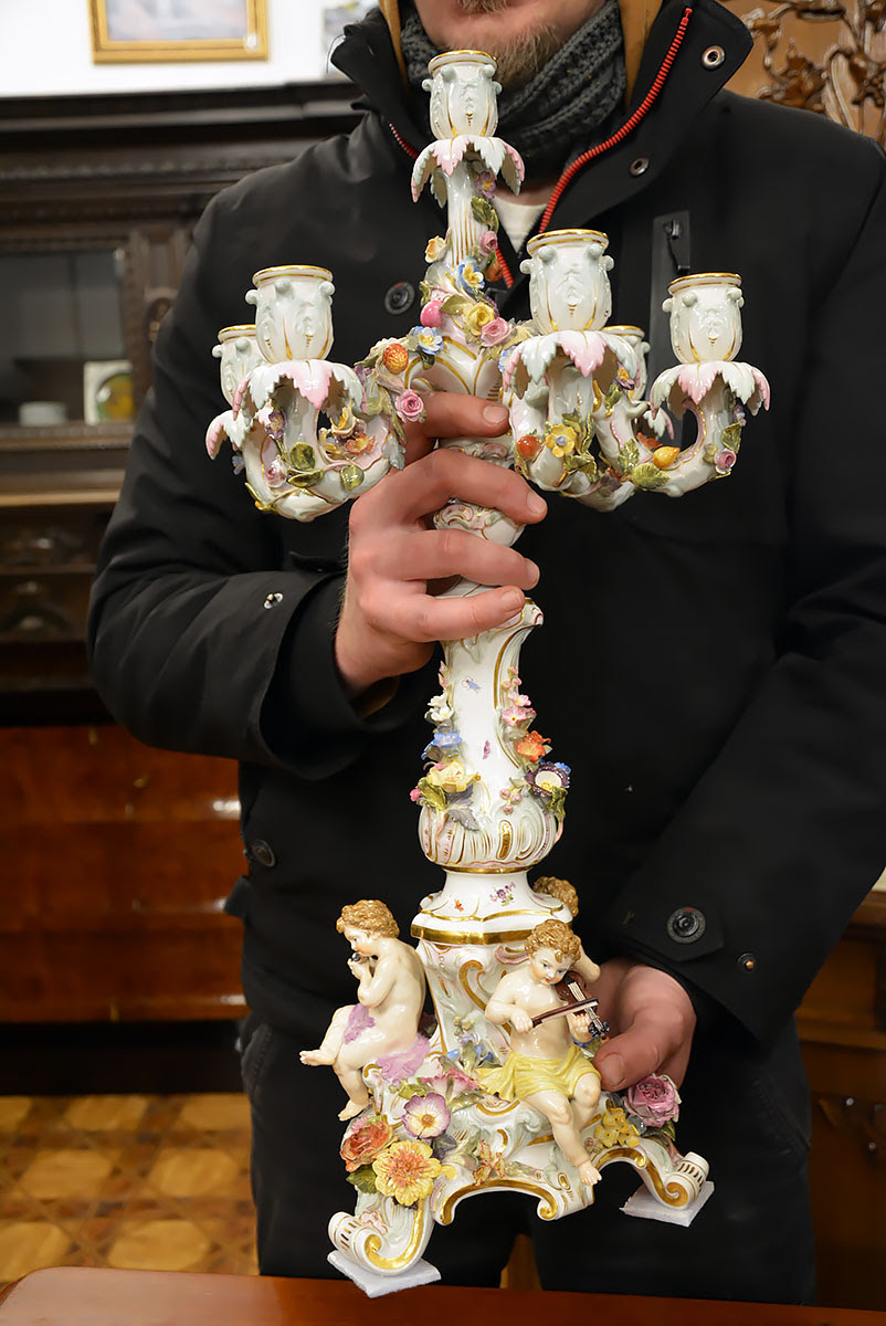 Wyjątkową parę kandelabrów wykonaną z porcelany w Królewskiej Manufakturze Porcelany w Miśni.
