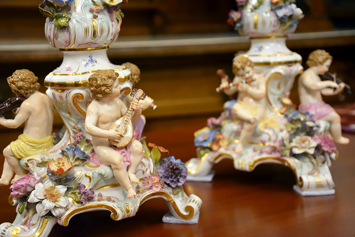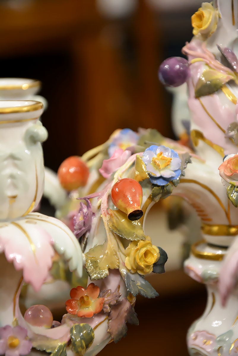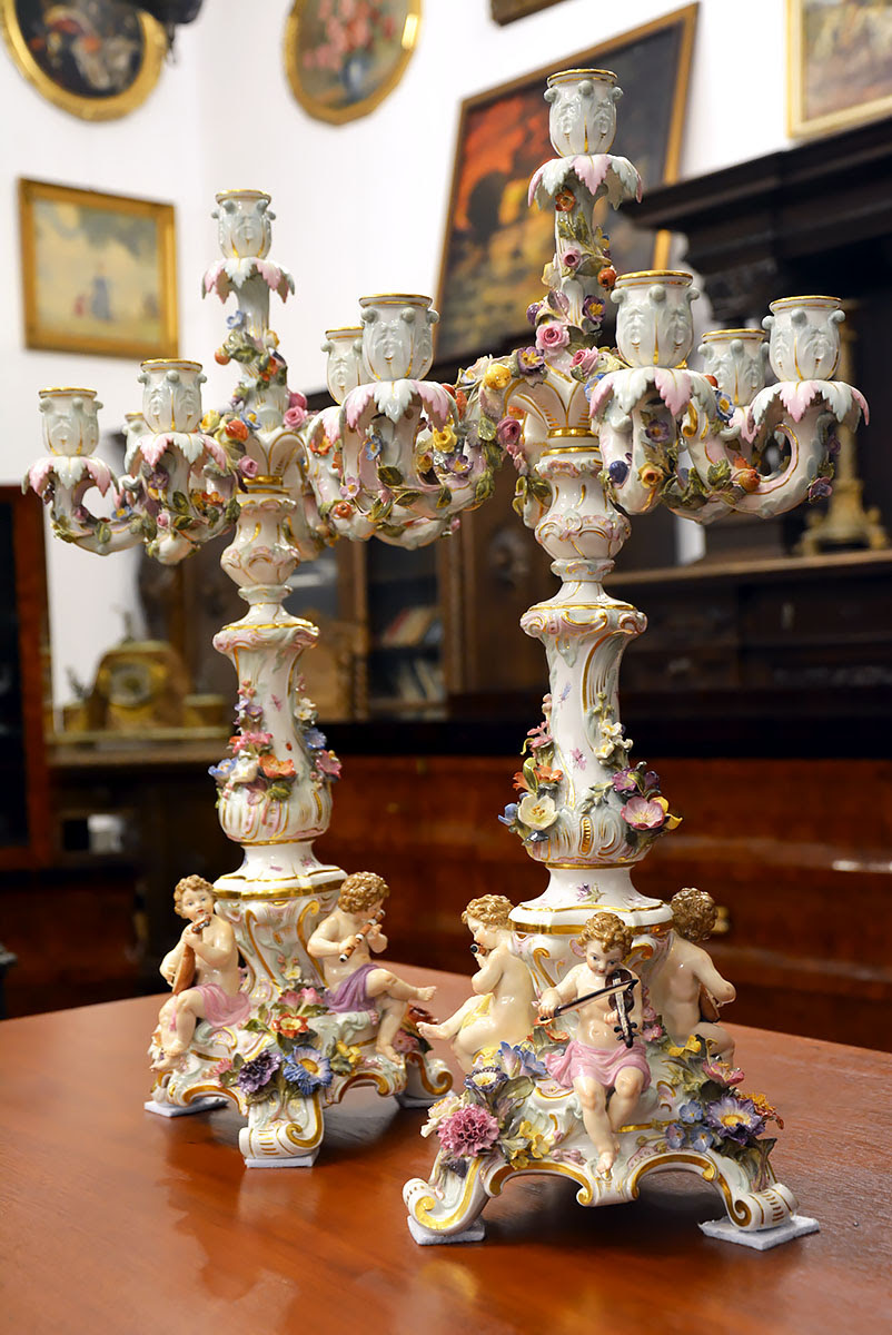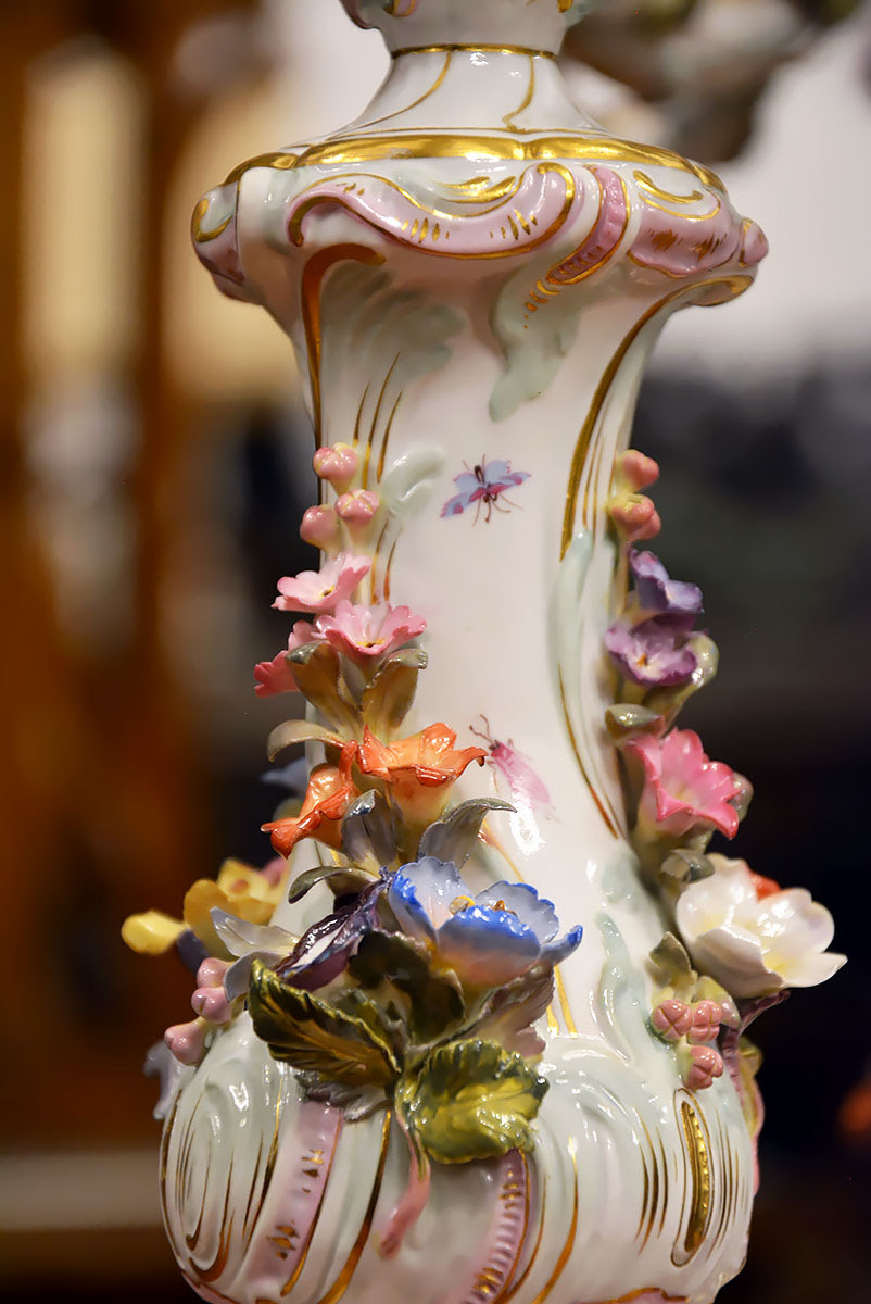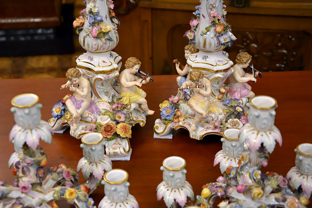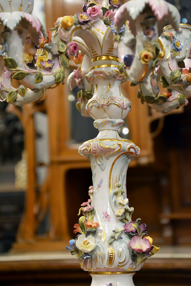 Wyjątkową parę kandelabrów wykonaną z porcelany w Królewskiej Manufakturze Porcelany w Miśni.