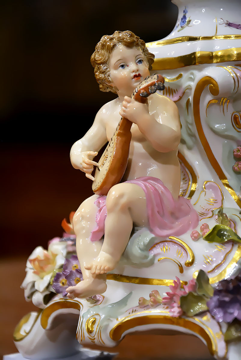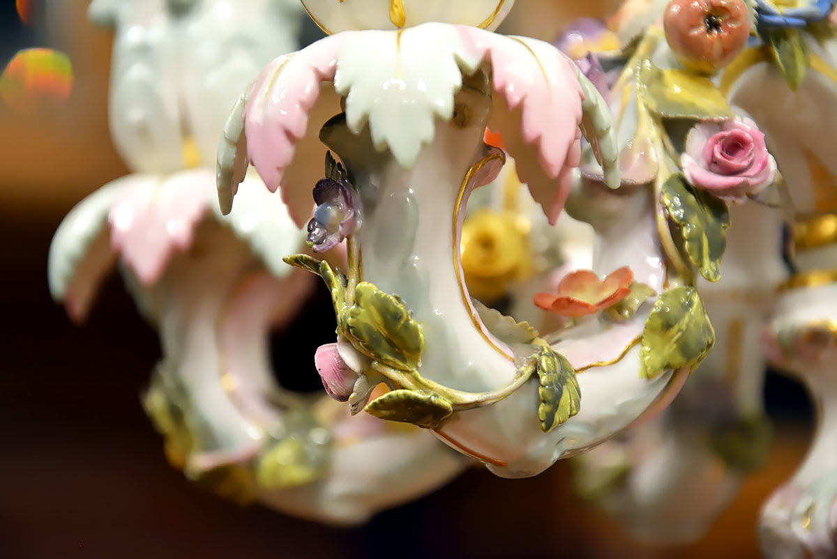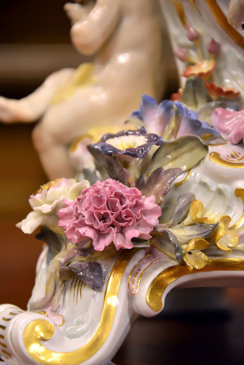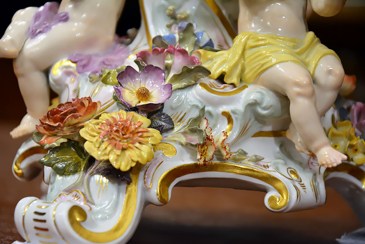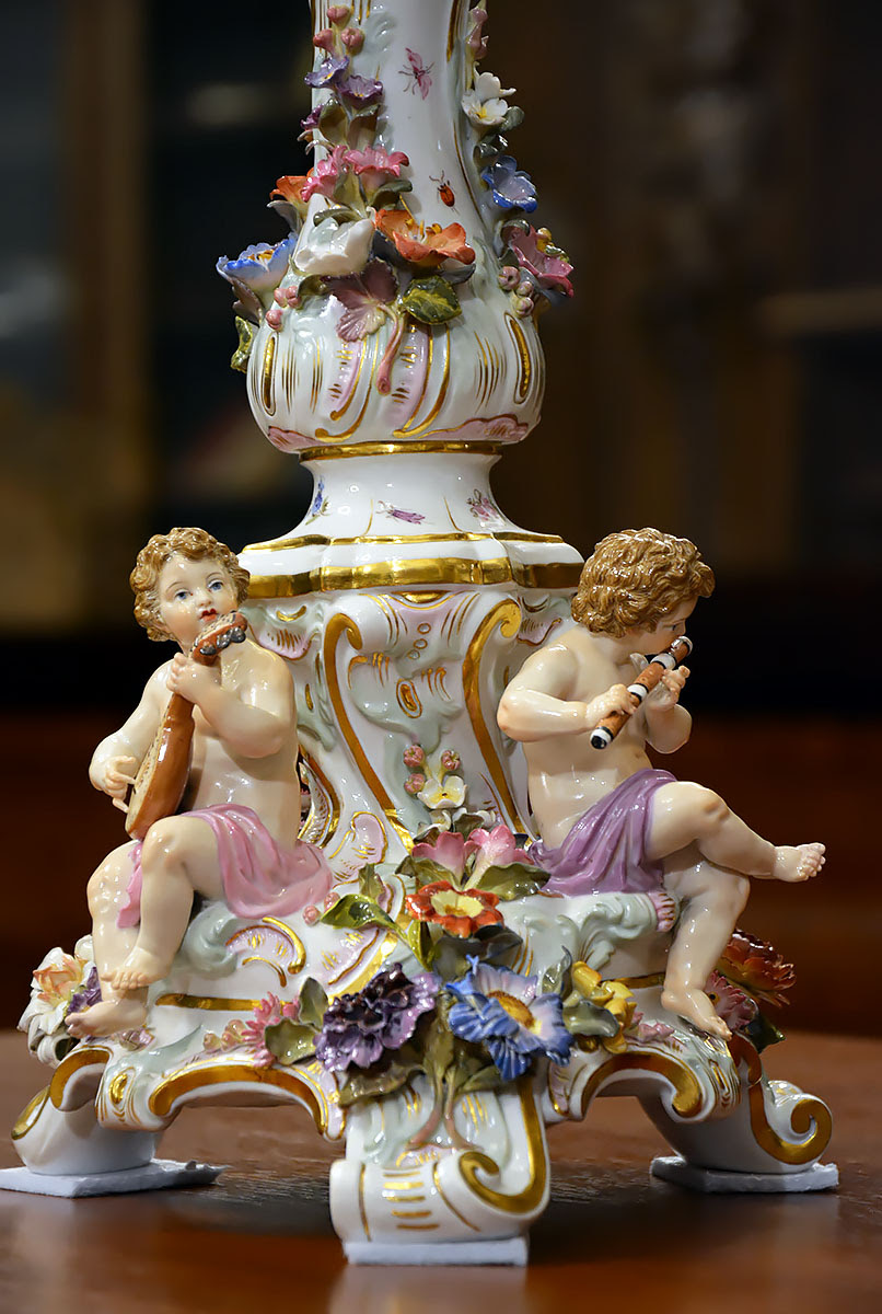 Niezwykła precyzja wykonania dekoracji kwiatowych i rzeźb figuralnych świadczy o najwyższym kunszcie projektanta oraz mistrzów porcelany miśnieńskiej.