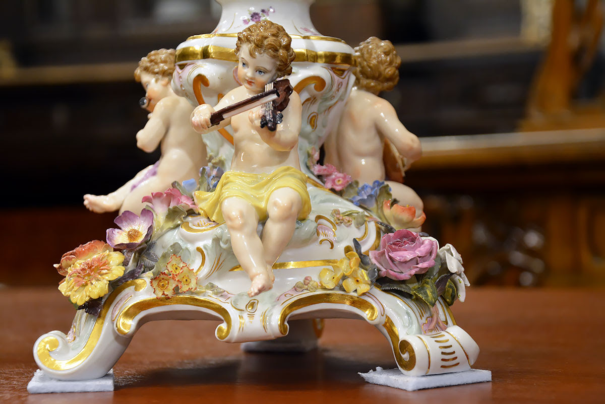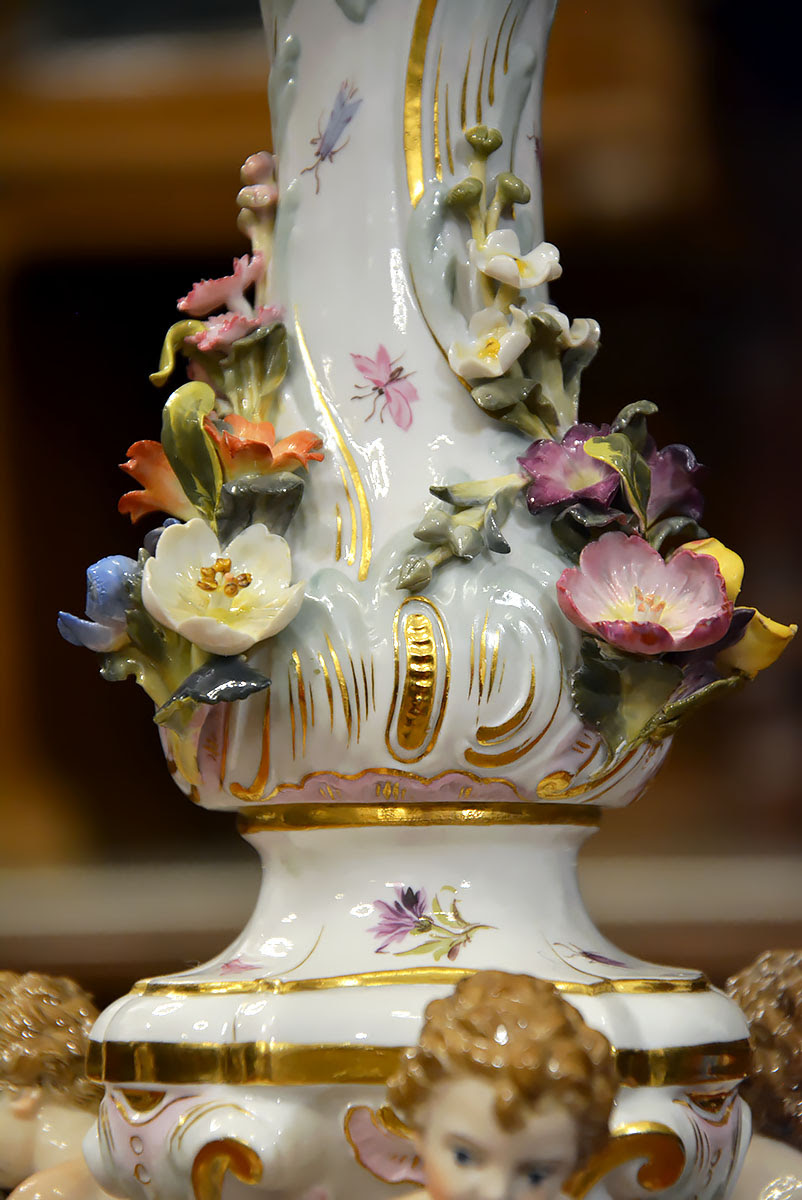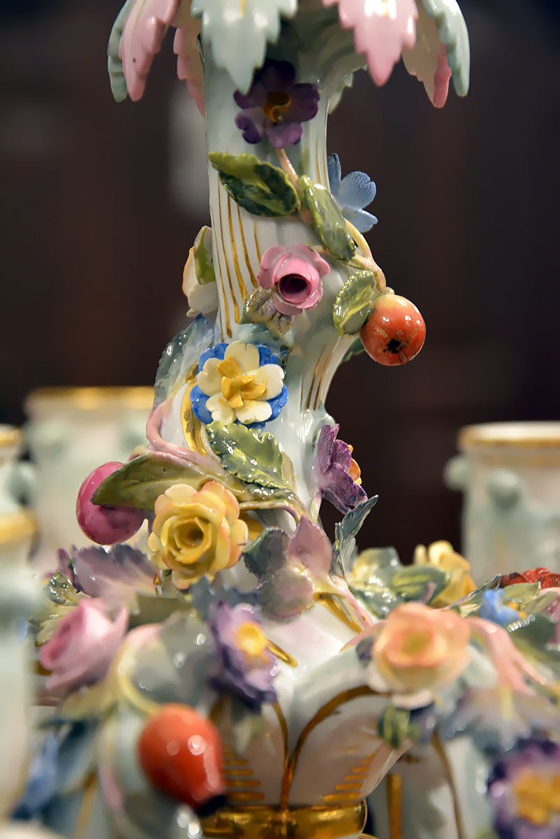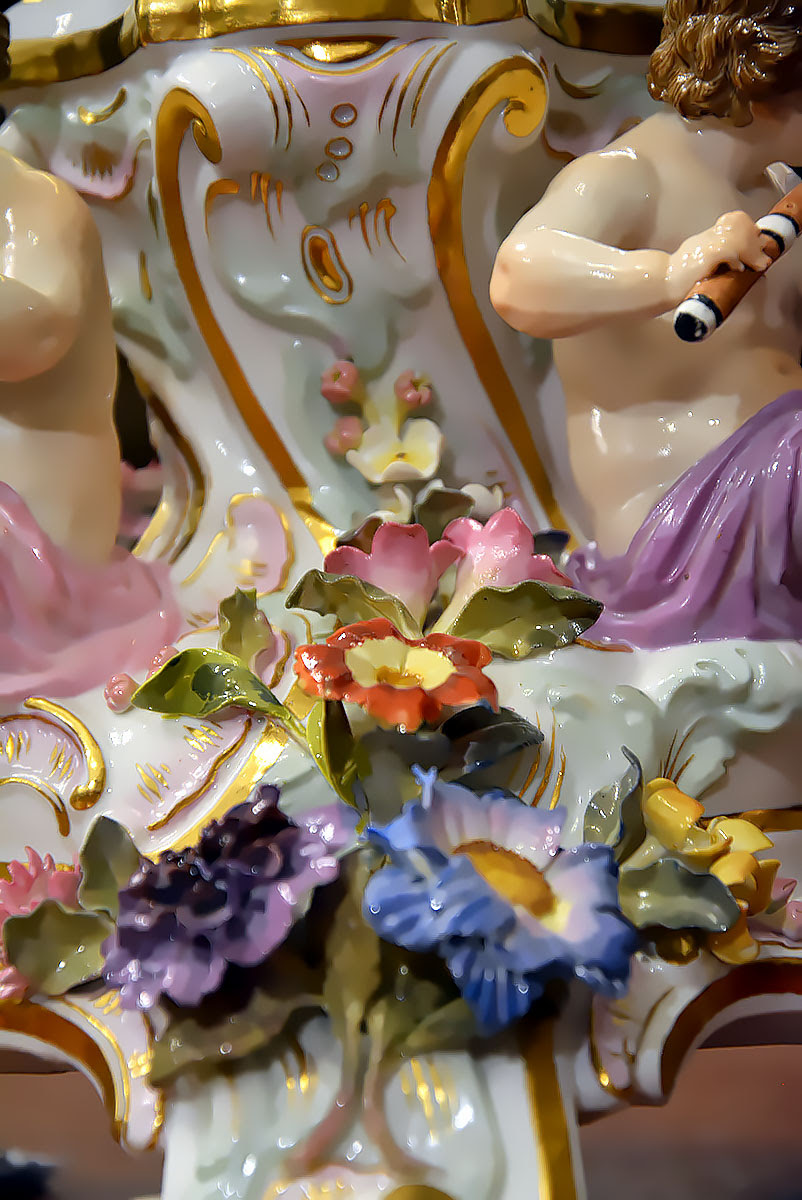 Niezwykła precyzja wykonania dekoracji kwiatowych i rzeźb figuralnych świadczy o najwyższym kunszcie projektanta oraz mistrzów porcelany miśnieńskiej.