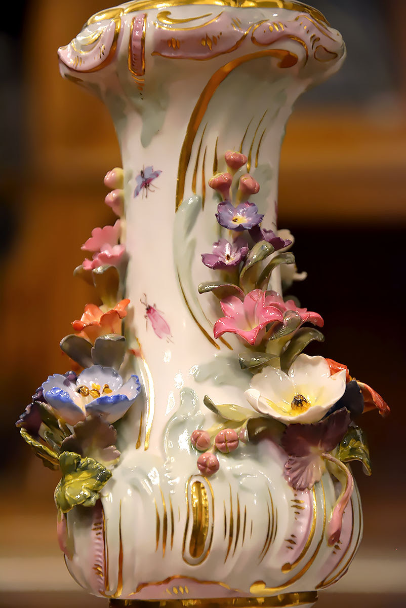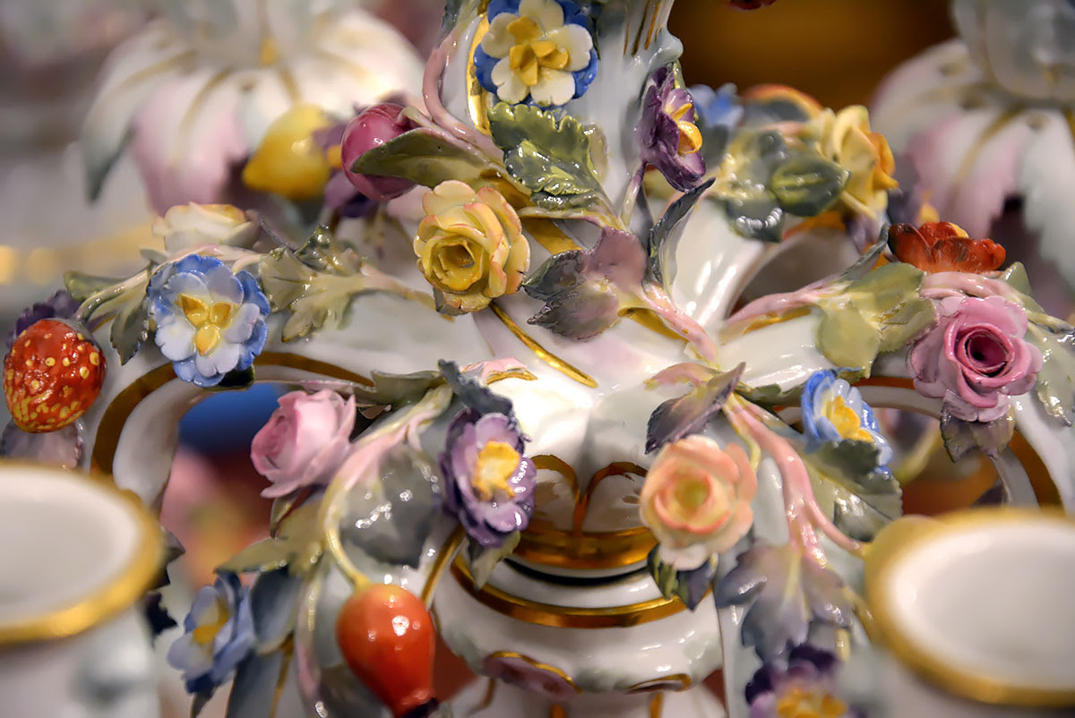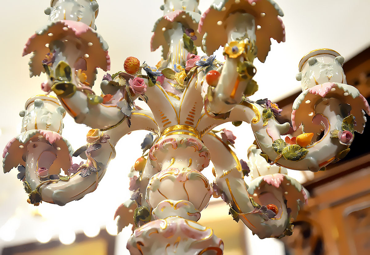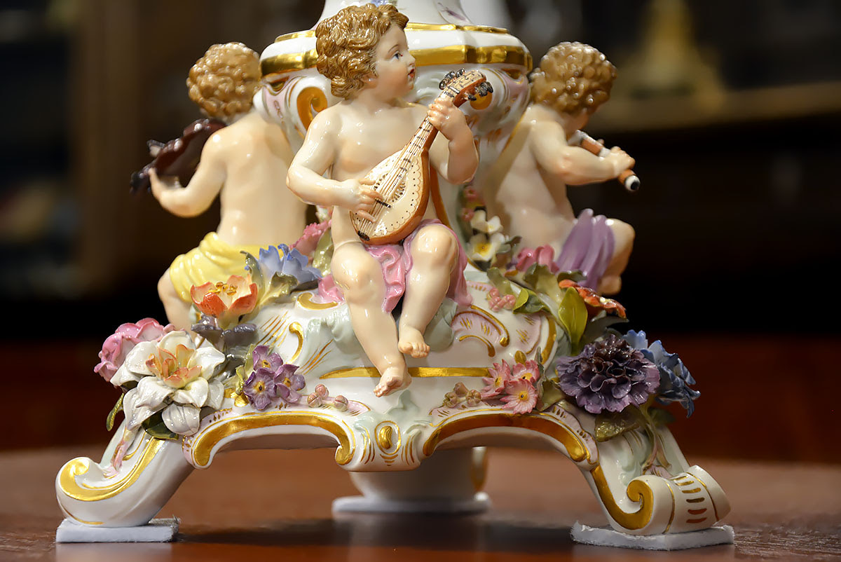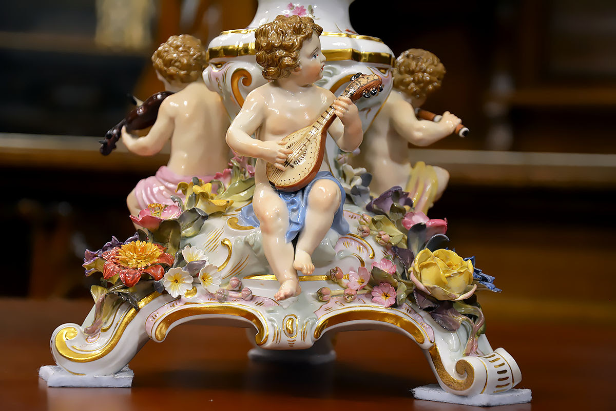 Niezwykła precyzja wykonania dekoracji kwiatowych i rzeźb figuralnych świadczy o najwyższym kunszcie projektanta oraz mistrzów porcelany miśnieńskiej.